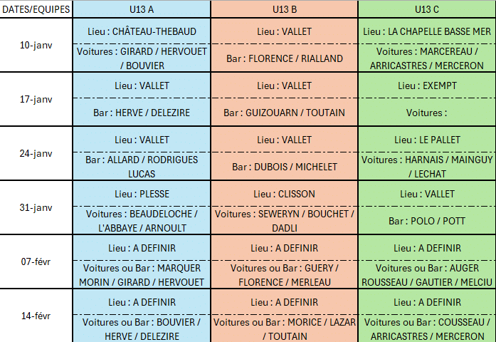 Date : Samedi 10 Janvier – RDV aux vestiaires : 12h15