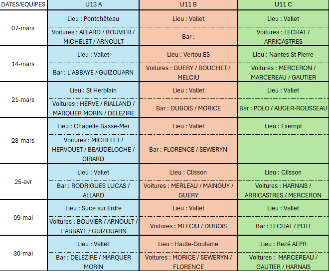 Date : Samedi 11 Avril – RDV aux vestiaires : 12h30 (Regarder la B et la C)